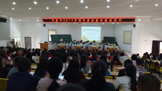 出版社根据我市要求派出三位来自东莞的培训专家、名师到我市展示现场课及作专题讲座。本次培训重点突破三方面的内容:一是教材分析与使用,二是PHONICS教学,三是单元复习教学。东莞市寮步镇香市中学吴洁滢老师分析教材时能结合具体课例,让参训教师既能总览全套教材,又能掌握教材具体的内容结构和处理方式,非常生动。东莞市东城第一中学周更生老师先展示一节PHONICS教学现场课,然后结合现场课作了PHONICS教学专题讲座,指导我市教师如何利用PHONICS教会学生见词能读、听音能写,让我市教师深受启发。东莞市常平振兴中学香瑞兴老师先展示一节单元复习课,然后结合现场课作了单元复习课教学专题讲座,试图指导教师解决单元复习课不好把握的难题。
