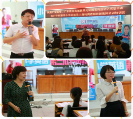 8月12日下午3:00-3:30,2017年河源市小学英语第三批转岗教师与新教师培训活动顺利开营。出席开营仪式的三方领导有广东教育出版社王维红副社长、河源民进基层委员会副主委河源市科技局王惠萍副局长、河源市教育局张东辉副局长以及河源市教育局教学研究院小学英语教研员游海燕老师。
