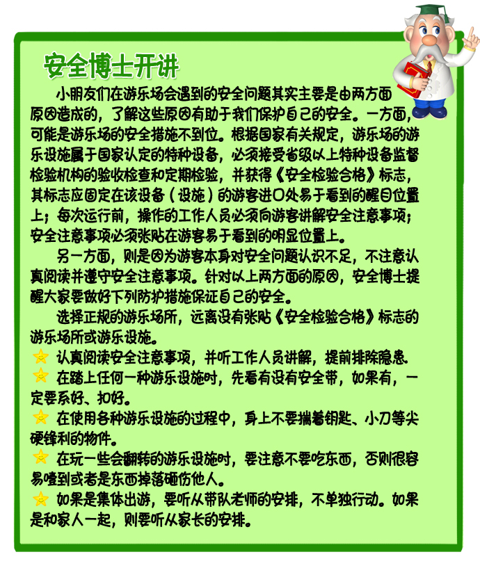 游玩前要熟悉安全注意事项,且要遵守。