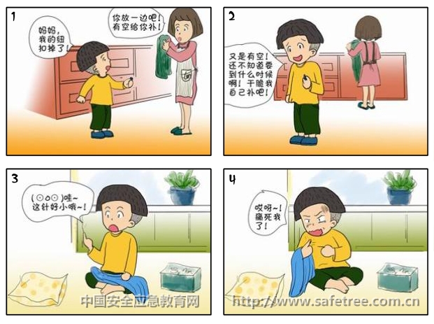 使用剪子、刀子、锤子和针线时的一些安全注意事项。