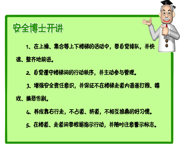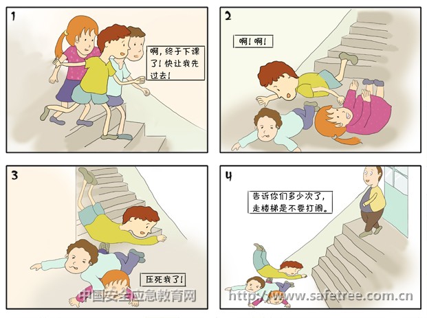 上午课间操时间到了,胖胖急急忙忙地从三楼教室里跑出来,直奔二楼的厕所而去(三楼没厕所)。但楼梯间的同学真多,胖胖一急干脆坐在光滑的扶手上向楼下滑去。别说,还挺快,就是在转角时差点儿摔下来。从厕所出来后,胖胖发现皮皮就在前面,他兴高采烈地推前开面的同学,拼命向前挤去。他一边挤一边对前面的同学说着“让让”,一个同学可能没听见,胖胖急了,用力一挤,差点儿将那位同学挤下楼。真险呀!