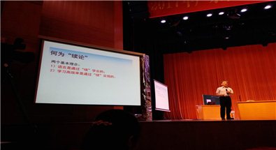 此次观摩研讨会内容丰富,会议内容包括专家专题讲座、优秀课例现场观摩、专家点评和颁奖活动。“9节省内本土新秀+1节香港嘉宾”的不同年级、不同课型的精彩课例以及学生的语言素养及思维无不让在场观课的老师们大赞与惊叹!王初明教授的专题报告--《续论》对提高小学英语教学效率的启示,以“续”促学,不断拉平与拉高学生的水平,生活化而又细致地深入解读“续”与“论”,让在场1000多位各地市的教研员和与会老师们深有感触,受益匪浅,对我市教研员和骨干教师更是一种水平和能力的提升。图为王初明教授的现场专题报告。